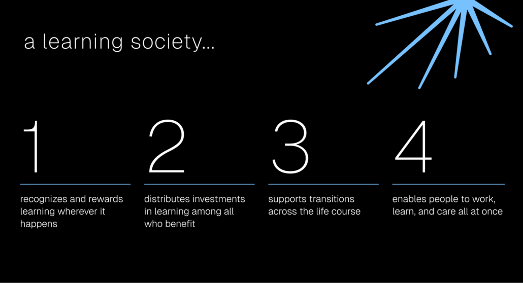 where all kinds of learning count, not just college degrees; and where all who benefit from a skilled and resilient workforce invest in sustaining it.